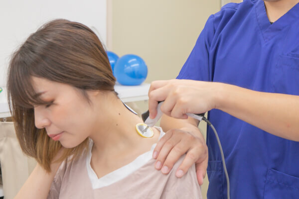 ハイボルトで炎症を鎮め、過剰に緊張した深層筋を緩めることで、首の可動域の早期改善を目指します。