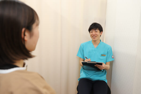 まずは患者様のお悩み、いつから痛むのか、どのような動作で痛むのかを詳しくお伺いします。